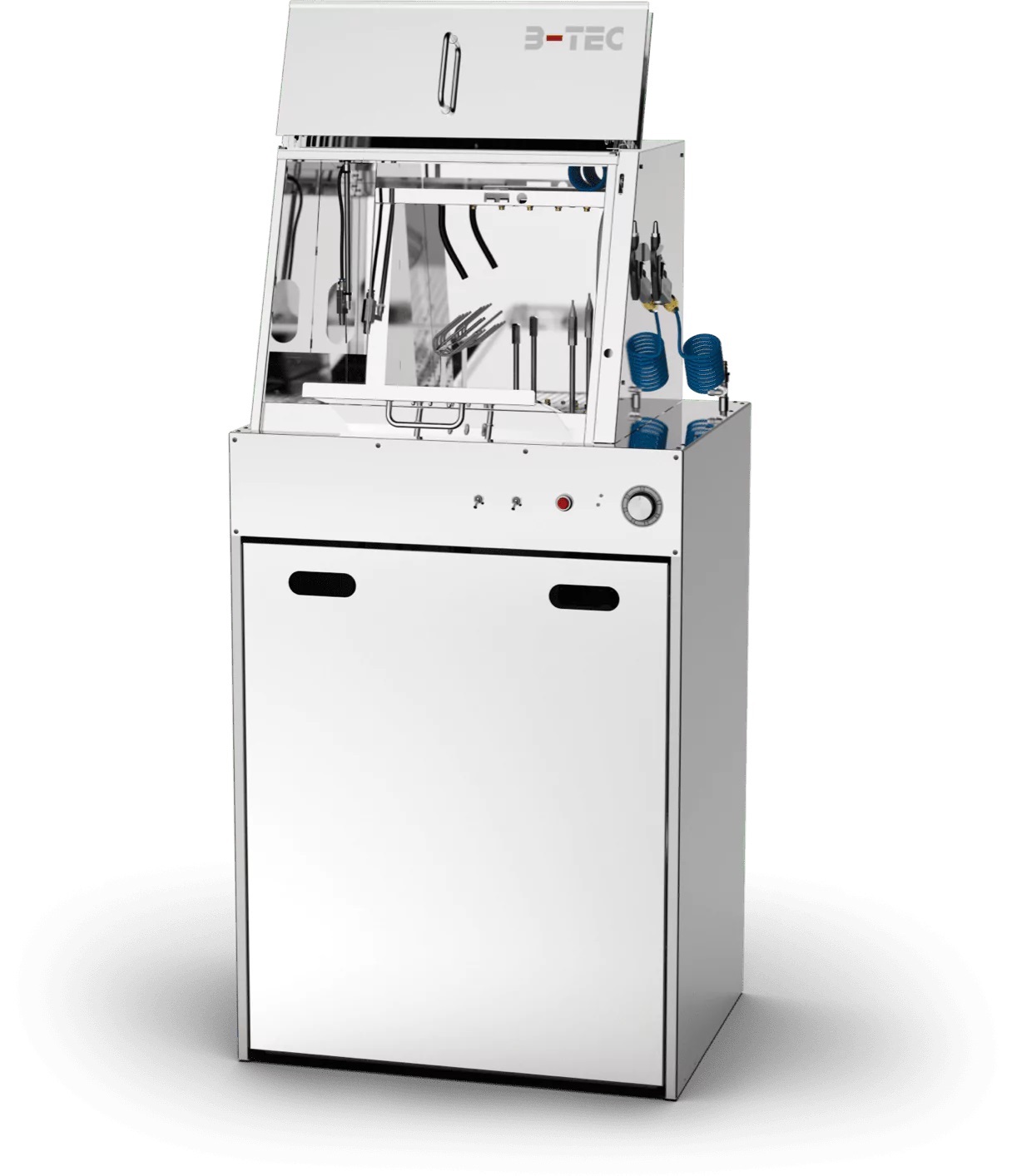 „Set Up My Own“. Weltweit das erste frei Konfigurierbarer Lackierpistolengerät. Waschgerät besteht aus zwei unabhängigen Waschräumen. Die wahlweise mit Lösemittel / B-TEC E2C, wässrigen Reinigern oder jeweils mit anderen Reinigungsmedium eingesetzt werden können.